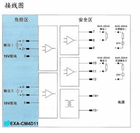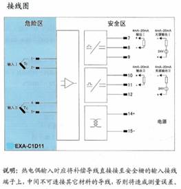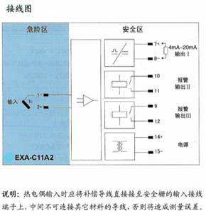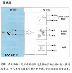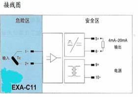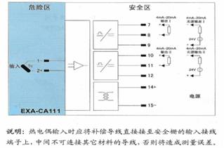 将来自危险区的热电偶信号,经隔离转换为4mA~20mA电流信号输出到安全区,自动补偿冷端温度。