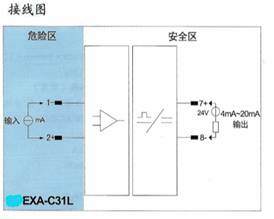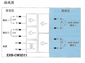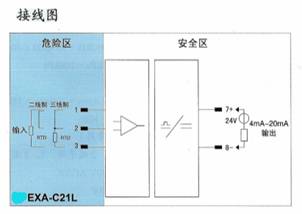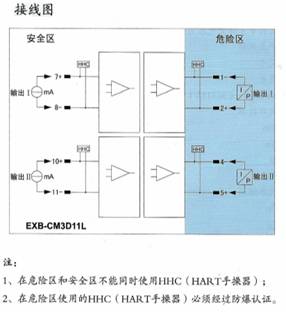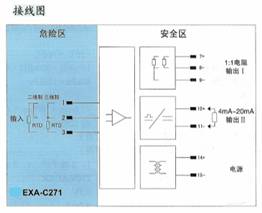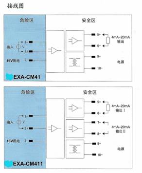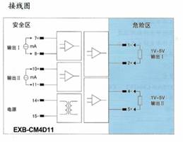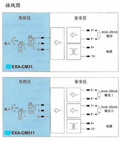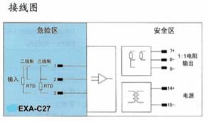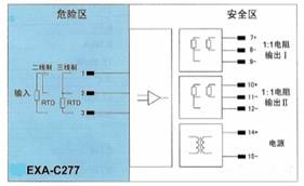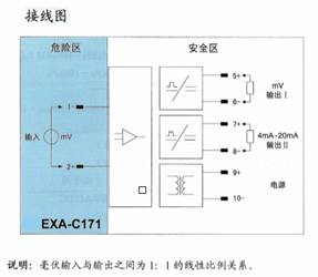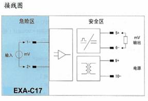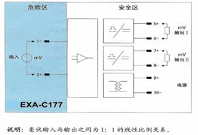 将来自危险区的毫伏信号,经隔离变送输出1∶1的毫伏信号到安全区。