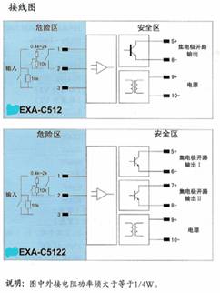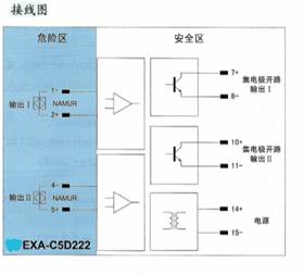 将危险区的NAMUR接近开关信号,经隔离转换输出到安全区,输出方式为集电极开路输出,同时可进行反相选择。
